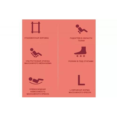 - Запатентованные массажные ролики способны двигаться в 5 плоскостях, что дает Вам незабываемое чувство расслабления.