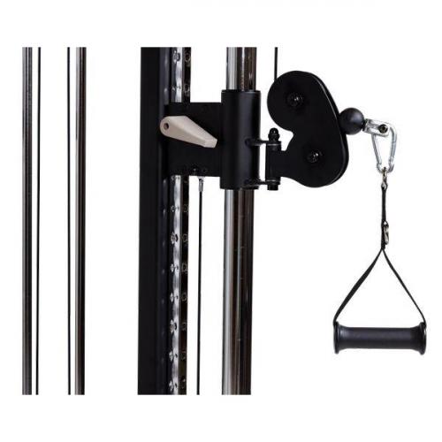 - Система шкивов с плавным скольжением обеспечивает комфортные движения при каждом упражнении. Высокопрочные стальные тросы с полиуретановым покрытием гарантируют долговечность и плавность работы на тренажере.