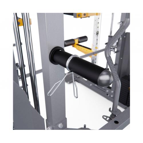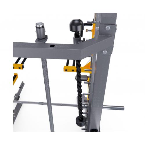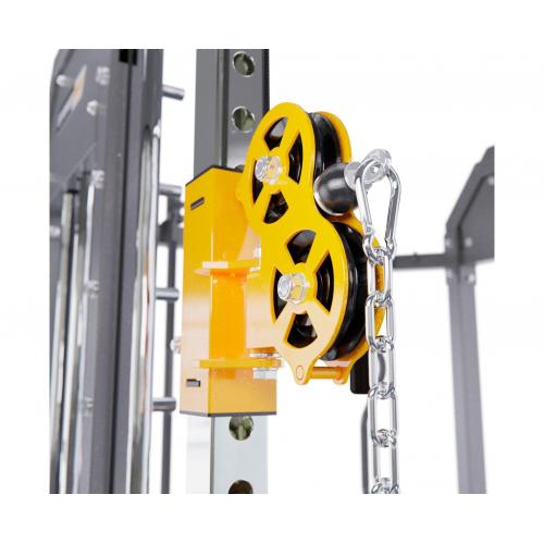 - Универсальность: благодаря наличию различных аксессуаров, таких как гриф прямой, турник W-образный, канат для трицепсов, многофункциональные Y-образные рукоятки, перекладина для гребли сидя, турник, ремешок на щиколотку, амортизатор для штанги, Т-образный турник, лэндмайн, нескользящая металлическая платформа для ног и брусья, пользователь может проработать все основные группы мышц своего тела.