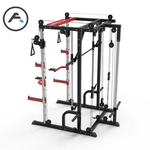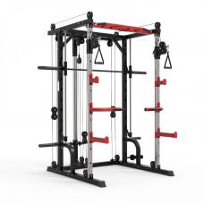 Основные особенности - Машина Смита, - силовая рама, - тяга снизу и сверху, - турник с различными вариантами хвата для подтягиваний, - брусья для отжиманий, - места для хранения аксессуаров и дисков.