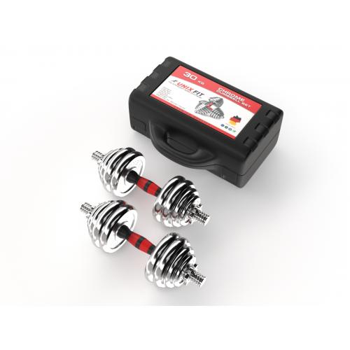 Набор двух разборных гантель хромированных общим весом 30 кг с кейсом