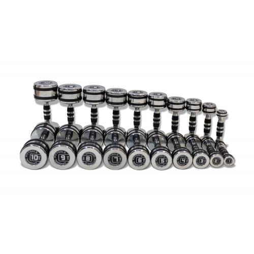 Набор хромированных гантелей от 1 до 10 кг (10 пар) с шагом 1 кг