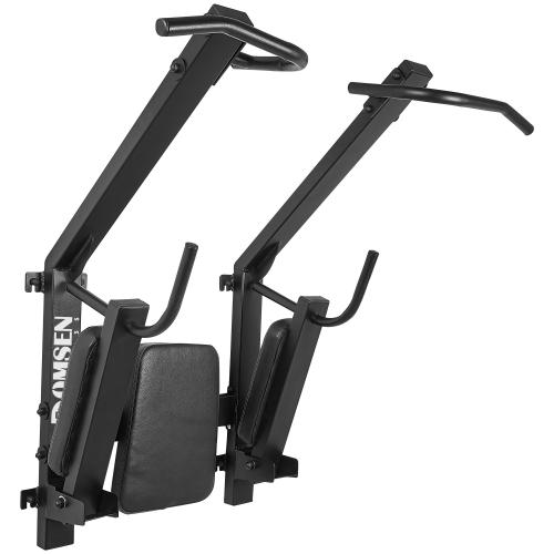 - Domsen Ds44 - многофункциональный тренажер, предназначенный для тренировок как в домашних условиях, так и в небольших спортивных залах. За счёт мощного профиля сварной конструкции максимальный вес пользователя для занятий на тренажере достигает 180 кг. Ширина между брусьями 60 см., Ширина турника 115 см. Турник Domsen Ds44 предназначен для выполнения целого комплекса упражнений: подтягивания на турнике различным хватом, поднятия колен или ног, вися на турнике или опираясь на локти, и отжимания на брусьях, что позволяет полностью прорабатывать верхнюю часть тела - руки, грудь, спину и пресс. Также запас прочности тренажера, при необходимости, позволяет работать с отягощением.