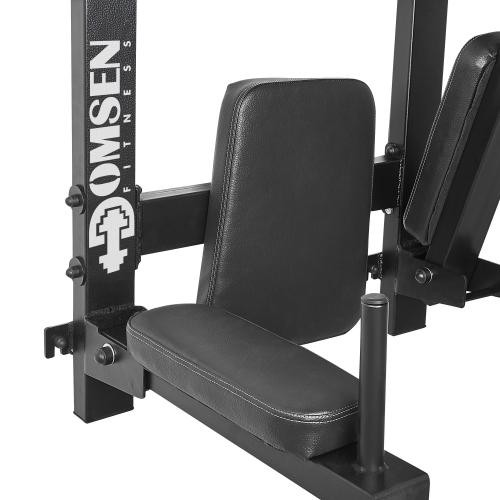 Мощный профиль рамы 80/40 мм толщиной не менее 2 мм позволяет выдерживать совокупную нагрузку на тренажер до 180 кг, а стильный дизайн органично впишется в любой интерьер. Обивка тренажера изготовлена из высококачественной винилискожы с высокой степенью прочности на разрыв, устойчивости к истиранию и механическим повреждениям. Также комфорт при тренировках придаёт наполнитель из плотного пенополиуретана, характеризующийся высокой эластичностью, износостойкостью и отличными амортизационными свойствами. Все комплектующие и материалы для изготовления продукции Domsen Fitness экологически безопасны, не имеют неприятного запаха.