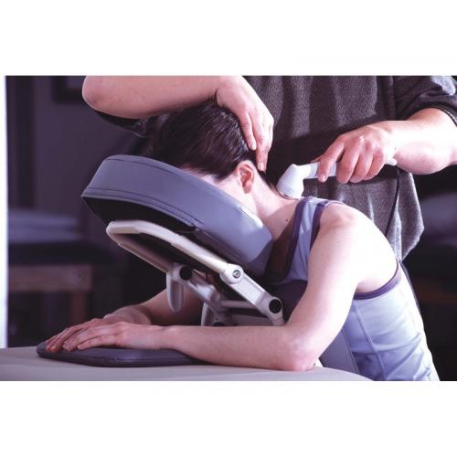 Портативное приспособление для массажа шейно-воротниковой зоны. Легко устанавливается на любом столе и регулируется в зависимости от проводимой процедуры. Легко использовать как в домашних условиях, так и в салоне.