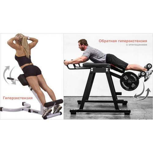 Тренажер обратная экстензия для спины и бедер с отягощением на свободном весе