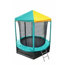Прочная стальная рама с 4 W-образными опорами, обеспечивающими сбалансированный контакт с поверхностью на которой установлен батут, во избежание переворачивания, наклонения или раскачивания. Дополнительная безопасность обеспечивается крепкими скрепляющими болтами рамы и стоек. Надежное прочное покрытие рамы и пружин защищает вас от повреждений, и вам не нужно ограничивать себя только серединой прыжковой поверхности. Рама, стойки и пружины гальванизированы в целях предотвращения коррозии, материал прыжковой поверхности и материал покрытия рамы и пружин стойкий к воздействию ультрафиолетовых лучей, что продлевает срок службы батута. Плотная сетка, закрепленная на 6 верхних стойках с мягким покрытием из полиэтиленового пеноматериала, обеспечивает защиту на 360 градусов. Батуты легкие в сборке, нет необходимости в дополнительных инструментах. Крыша изготовлена из оцинкованных стальных труб и чехла ПВХ, ей не страшны любые погодные условия, она обладает стойкостью к коррозии, к воздействию ультрафиолетовых лучей. Это позволяет использовать батут в непогоду и дополнительно защищает прыжковый мат, увеличивая срок службы батута.