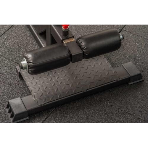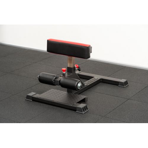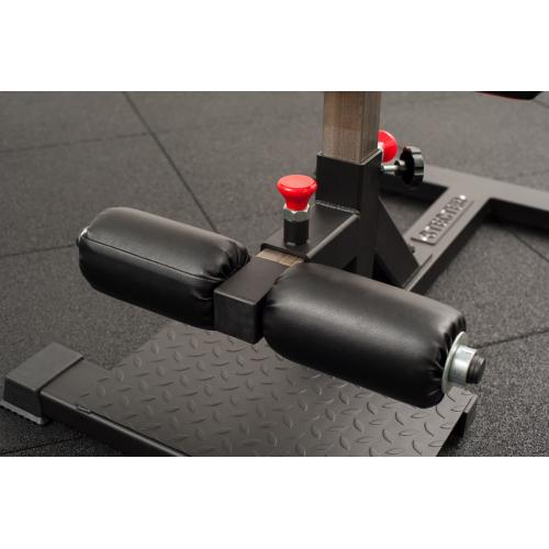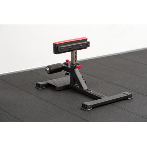 Поставка для приседаний STECTER позволяет зафиксировать положение ног для выполнения приседаний. Конструкция разработана таким образом, что позволяет регулировать положение валиков для ступней и положение подушки под голени независимо друг от друга с шагом в 15 мм. Высота подушки для голени регулируется в диапазоне от 405-570 мм. Платформа для ног выполнена из рифленого листа, который так же способствует лучшему сцеплению с подошвой кроссовок. Для амортизации и улучшенного контакта с полом на основании подставки для приседа установлены резиновые подпятники.