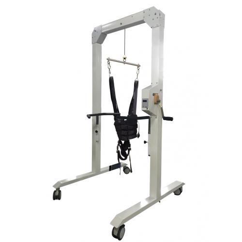 - Подвес оснащен ручным (механическим) приводом для разгрузки веса пациента. С его помощью на ноги и позвоночник тренирующегося можно снизить или полностью избавить от тяжести собственного веса.