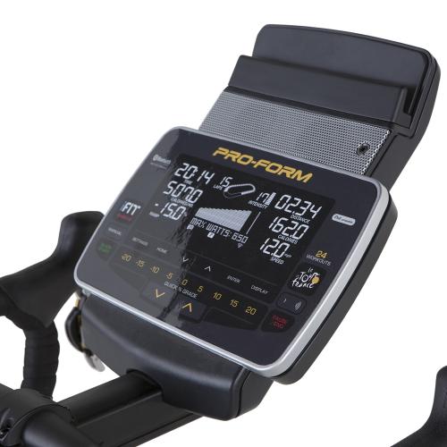 - Показания консоли: скорость, дистанция, время, калории, сердечный ритм, текущий уровень сопротивления в Ватт