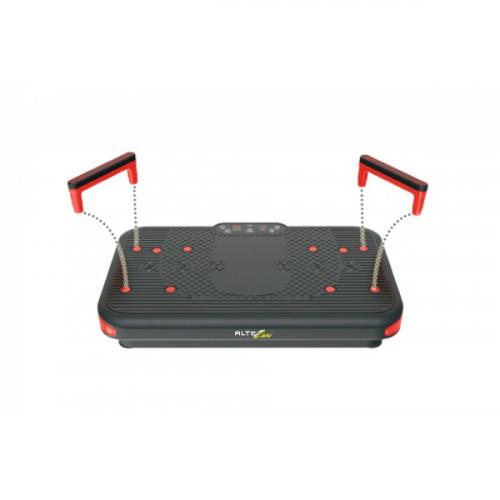 Для того что бы тренировочный процесс стал более разнообразным и эффективным, мультифункциональная виброплатформа Altezani оборудована съемными ручками, предназначенными для проработки грудных, плечевых, мышц спины и трицепса. А также у пользователя есть возможность добавить к платформе эспандеры, которые позволят увеличить нагрузку во время тренировки.