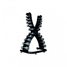 За счет своей конструктивной особенности, стойка не требует большой площади для размещения, и позволяет удобно попарно хранить гантели одного веса.