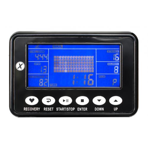 - На консоли Proxima Remos отображаются скорость, время,расстояние, израсходованные калории, пульс, обороты в минуту. По желанию можно использовать нагрудный датчик.