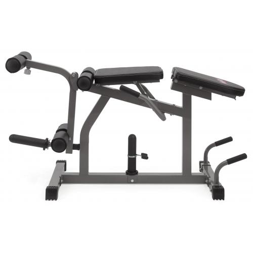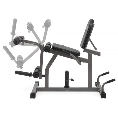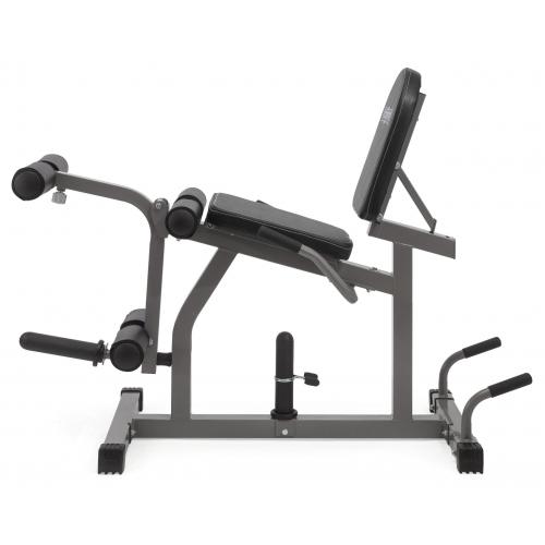- Один тренажер эффективно заменяет два: для разгибания ног (проработка квадрицепса) и сгибания ног лежа (бицепс бедра и икры). Регулировка высоты валика гарантирует правильную и комфортную биомеханику движений.
