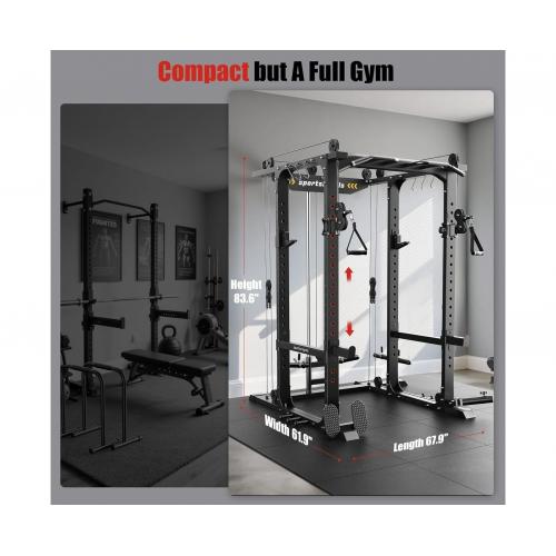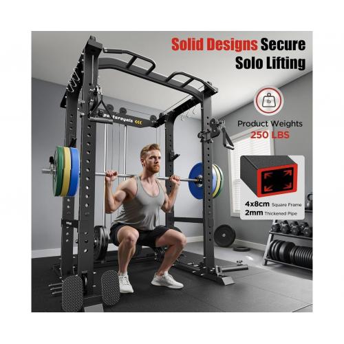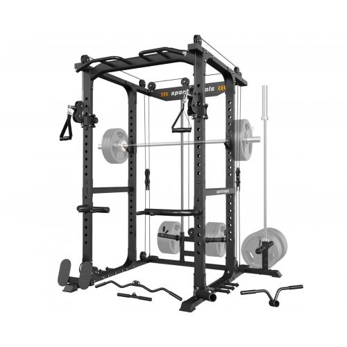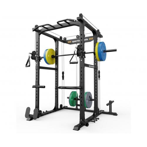 Многофункциональная силовая рама со стойкой на свободных весах и реглируемыми тягами