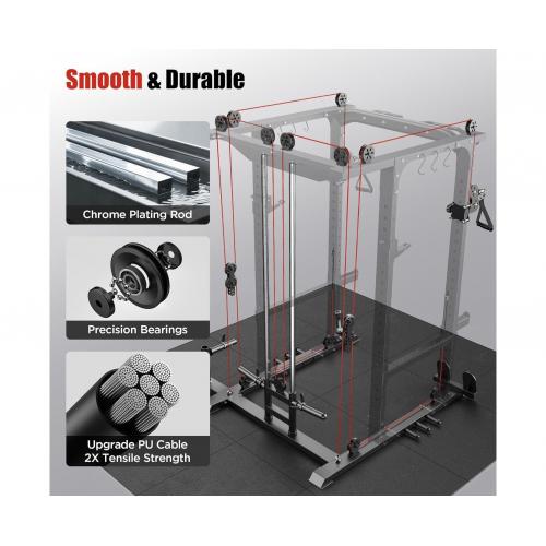 - Профиль рамы 40*80*2 мм, Максимальная статическая нагрузка до 1000 кг, что обеспечивает безопасную и комфортную эксплуатацию тренажёра для пользователей разного уровня подготовки. Рама имеет прочный профиль и посадочный диаметр, а толщина тросов и рукояти для тяги обеспечивают надёжность и стабильность при выполнении упражнений.