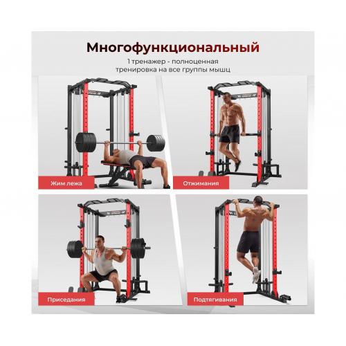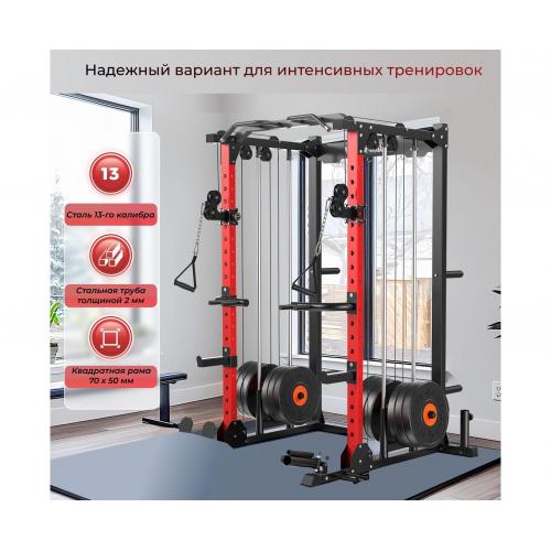 - Профиль рамы 50*70*2 мм, Максимальная статическая нагрузка до 800 кг, что обеспечивает безопасную и комфортную эксплуатацию тренажёра для пользователей разного уровня подготовки. Рама имеет прочный профиль и посадочный диаметр, а толщина тросов и рукояти для тяги обеспечивают надёжность и стабильность при выполнении упражнений.