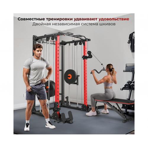 Силовая рама многофункциональная с двумя блочными стеками на свободных весах