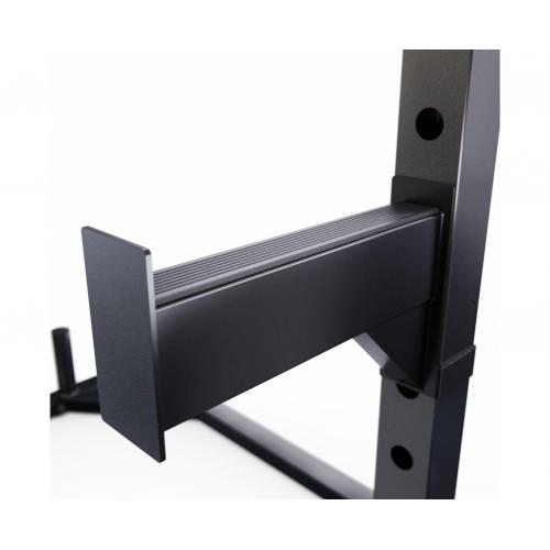 - Максимальная нагрузка на стойку для приседаний 272 кг — она способна выдерживать значительные веса, что делает её подходящей для профессиональных атлетов и любителей тяжелой атлетики. Стойка изготовлена из прочной стали и покрыта порошковым напылением, что обеспечивает долговечность и надежность в эксплуатации.