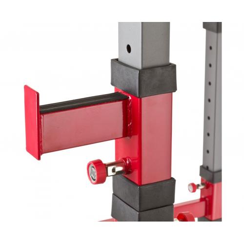- Поскольку стопоры безопасности можно отрегулировать в 25 различных положениях, эту силовую стойку могут использовать пользователи разного роста. Внутренняя ширина составляет 113 см, благодаря чему пользователь будет чувствовать себя комфортно во время тренировки со штангой (не входит в комплект) или подтягиваний на турнике. Более того, рама PW100 подходит для всех типов тренировочных скамеек, что позволяет выполнять еще больше упражнений, включая классический жим лежа (скамья в комплект не входит).