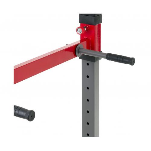 - Универсальная перекладина — неотъемлемая часть стойки, позволяющая выполнять базовые подтягивания или другие упражнения для укрепления верхней части тела. Брусья для отжиманий можно отрегулировать по ширине: расстояние между ними составляет 51 и 66,5 см в зависимости от выбранного положения.