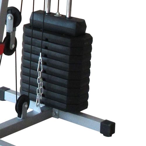 Ролики на подшипниках обеспечивают плавное движение. Стальной трос в защитной оплетке так же гарантирует безопасность при выполнении упражнений. Весовой стек имеет общую массу 45 кг.