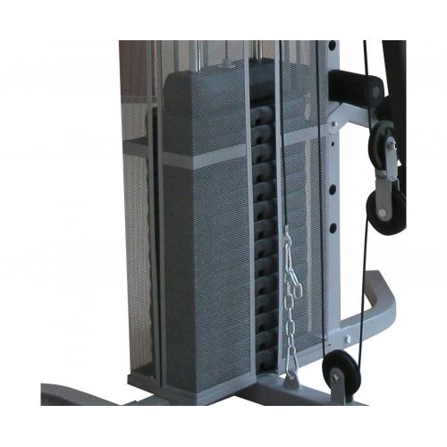 Ролики на подшипниках обеспечивают плавное движение. Весовой стек массой 68 кг имеет защитный кожух для безопасности пользователя.
