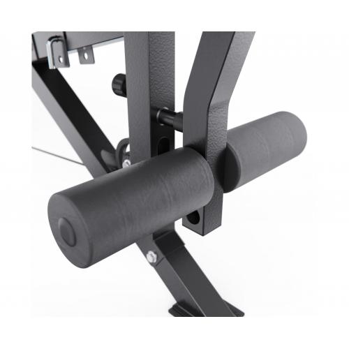 - Многофункциональный силовой комплекс позволяет выполнять упражнения на грудь, спину, плечи, руки, пресс и ноги. В оснащение входят парта для бицепса, верхняя и нижняя тяга, а также тренажер для сведения и разведения рук, расширяющий возможности проработки грудных мышц и плечевого пояса. Мягкие валики для ног обеспечивают надежную фиксацию и комфорт при выполнении упражнений на пресс и ноги.