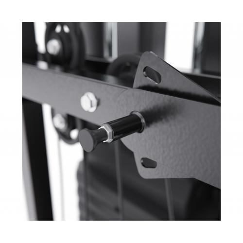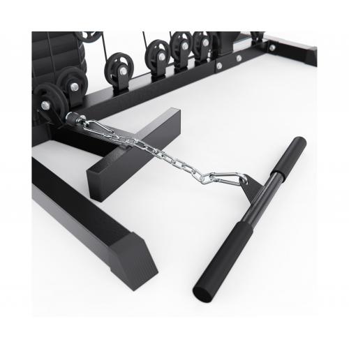 - В конструкции предусмотрено 13 свободных блоков и 1 встроенный весовой блок весом 77 кг. Такая система позволяет гибко настраивать нагрузку по уровню физической подготовки — от начинающего до уверенного спортсмена. Силовой комплекс удобно использовать как для набора мышечной массы, так и для поддержания формы.