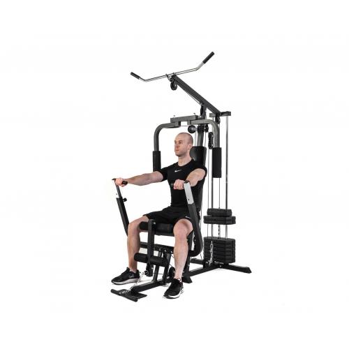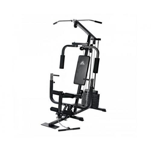 - Комплекс для домашнего использования DFC D7010 с блоком 63 кг предназначен для силовых упражнений на все группы мышц, благодаря большому количеству функций. На нём можно выполнять жим от груди сидя и лёжа, тягу верхнего и нижнего блока, приседания, подтягивания, разгибания ног и многие другие упражнения.