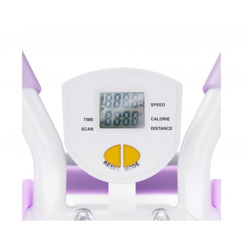 - Для отслеживания результатов тренировок скамья оборудована встроенным монохромным LCD-дисплеем. Он отображает ключевые параметры: время тренировки, количество повторений, количество сожжённых калорий и частоту движений в минуту. Питание от 1 батарейки AAA (входит в комплект).