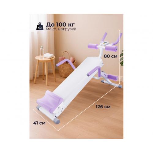 - Скамья для пресса отличается прочной конструкцией и выдерживает нагрузку до 100 кг. Размер в рабочем состоянии — 126 х 41 х 80 см, в сложенном — 145 х 63 х 51 см. Компенсаторы неровности пола обеспечивают устойчивость даже на неровной поверхности. Тренажер легко складывается и перемещается вручную.
