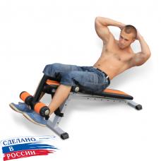 Впервые важнейшие технические и методические качества объединены в одной скамье для всех видов упражнений. Высота над полом — 43 44 см (44 см-«М») см. Регулировка угла наклона спинки и сиденья от минус 30 град. до +85 град. 9 положений спинки и 3 положения сиденья скамьи.