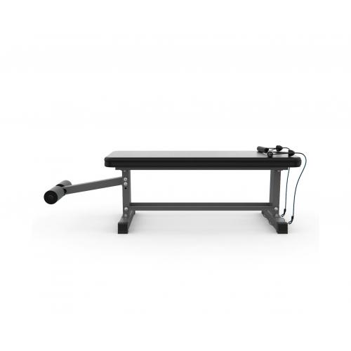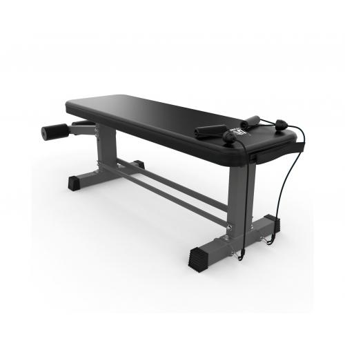 Скамья силовая прямая горизонтальная с валиком для ног и эспандерами для рук