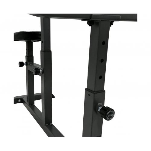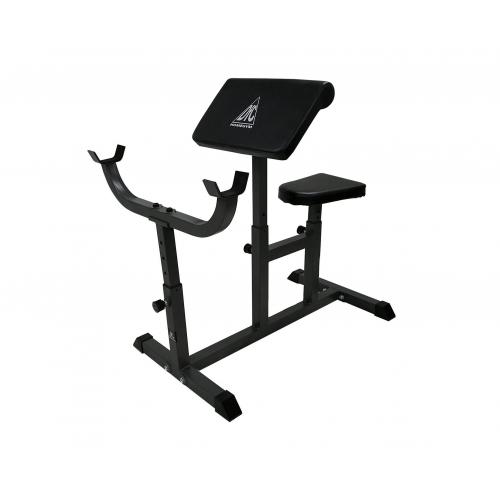 Сиденье, парта для бицепса и стойки под штангу регулируются по высоте. 4 уровня регулировки.