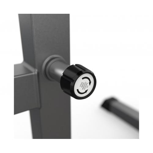 Сиденье, парта для бицепса и стойки под штангу регулируются по высоте. 4 уровня регулировки парты и 5 уровней - сиденья и стойки.Прочная рама тренажера изготовлена из высокопрочной стали, размер профиля: 50х50 и 50х70, толщина 1,5 мм. Ножки тренажера с резиновыми нескользящими вставками, что делает его устойчивым даже во время активной тренировки.