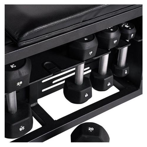 Fusion Bench — это универсальная регулируемая тренировочная скамья со встроенным хранением. Прочная стальная рама и мягкие подушки созданы для самых жестких тренировок. Плоская или наклонная спинка регулируется в 6 положениях и располагается поверх хранения для 12 гантелей и других аксессуаров. Скамья Fusion Bench, оснащенная 2 крючками для эспандеров, — это место, где полезность встречается с универсальностью.