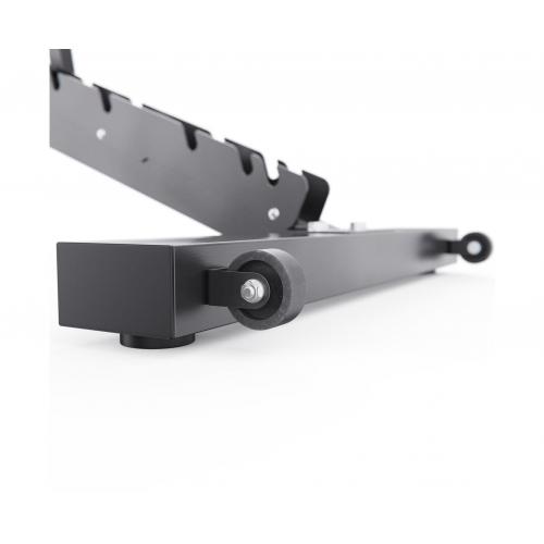 - Скамья складная, легко собирается и занимает минимум места, а удобная ручка и транспортировочные ролики помогают быстро переносить скамью, что делает ее идеальной для домашних условий.