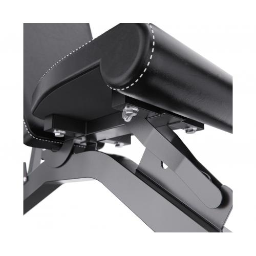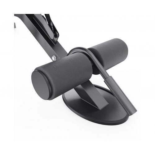 - Скамья спортивная имеет регулируемую спинку, которая фиксируется в 8 различных положениях, позволяя вам подбирать нужный угол наклона. Это дает возможность выполнять как жим лежа, так и обратный жим, адаптируя скамью под ваши индивидуальные нужды. Сиденье имеет 3 уровня регулировки, что обеспечивает оптимальный комфорт и поддержку для каждого пользователя. Валики для ног из мягкого материала помогают зафиксировать ноги и избежать скольжения во время выполнения упражнений.