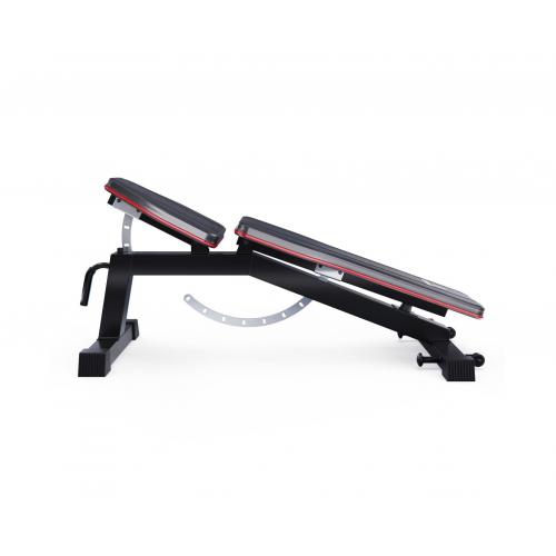 - Скамья спортивная имеет 9 уровней регулировки спинки и 3 уровня регулировки сиденья, чтобы быстро преобразовать ее для тренировки в прямое, наклонное и даже отрицательное положение. Угол наклона спинки варьируется от -21° до 85°, что позволяет выполнять широкий спектр упражнений, включая жим лежа и пресс. Сиденье также имеет возможность наклона от 0° до 30°, что добавляет гибкости в тренировочный процесс. Высота от сиденья до пола равна 52 см.
