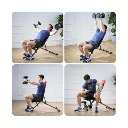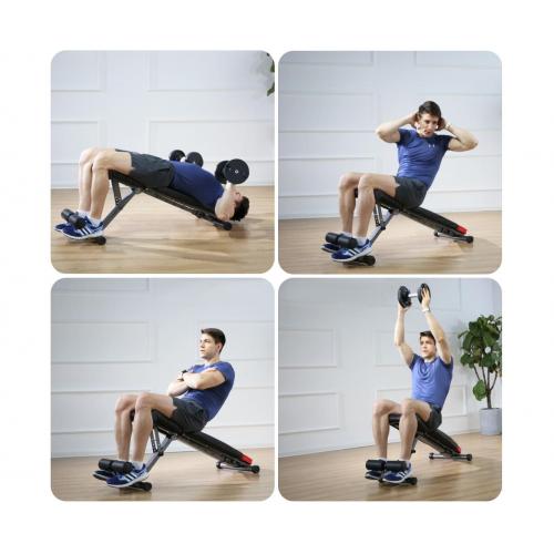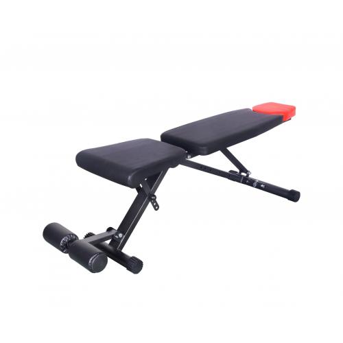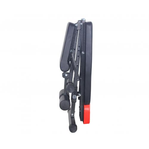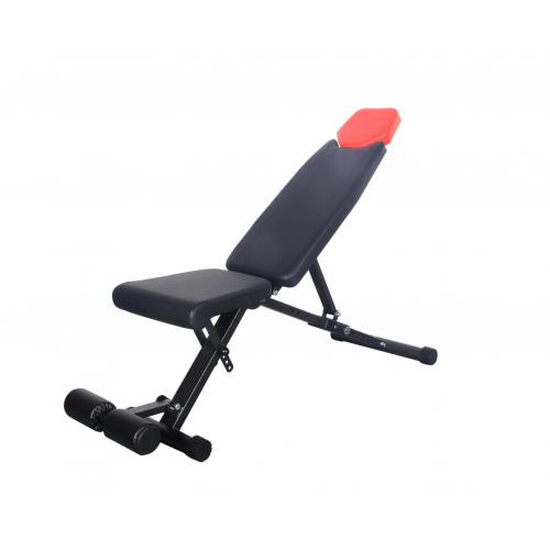 Функциональная и стильная скамья предназначена для домашнего использования. Имеет необычный дизайн: подголовник имеет ярко-красный цвет. Остальная конструкция выполнена в чёрном цвете. Такой дизайн подойдёт как для небольшого домашнего фитнес-зала, так и впишется в интерьер любой комнаты в доме или квартире.