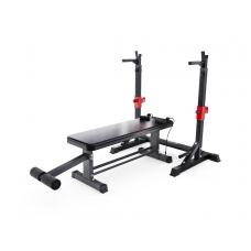Скамья со стойками под штангу с упором для ног и эспандерами