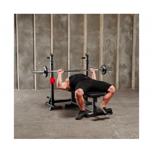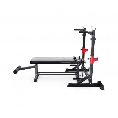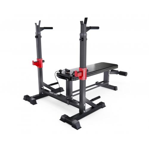 - Прямая силовая скамья со стойками под штангу DFC D2031TJ07 — идеальный выбор для домашних тренировок! Скамья выдерживает активные нагрузки до 277 кг, что помогает использовать её как новичкам, так и профессиональным спортсменам. Тренажер позволяет легко выполнять различные упражнения, включая жим лежа, жим от плеч, приседания, подъемы над головой, упражнения со штангой, отжимания на брусьях, подтягивания, отжимания, что делает его универсальным.
