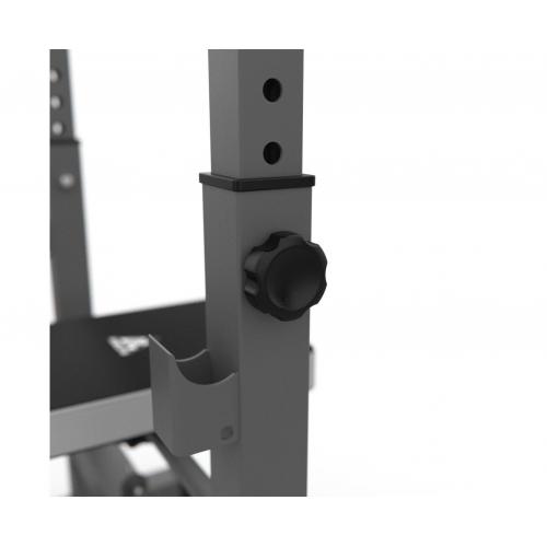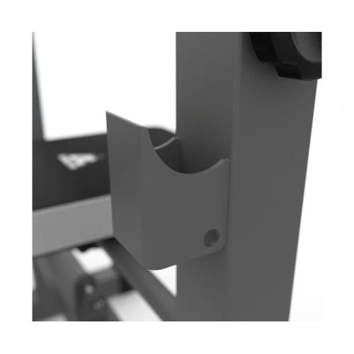 - Стойки регулируются по высоте на 6 уровней от 79,5 до 97 см, что позволяет использовать скамью для людей разного роста. Высота от пола до скамьи составляет 44 см, длина опорных ножек стойки - 34,5 см, расстояние от задних до передних ножек стойки – 105 см.