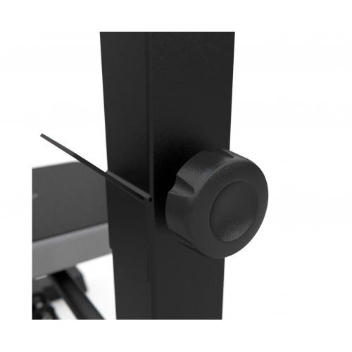 - Стойки регулируются по высоте в диапазон от 81 до 99 см. Доступно 6 уровней с шагом в 3 см. Для регулировки на каждой стойке имеется специальная ручка.