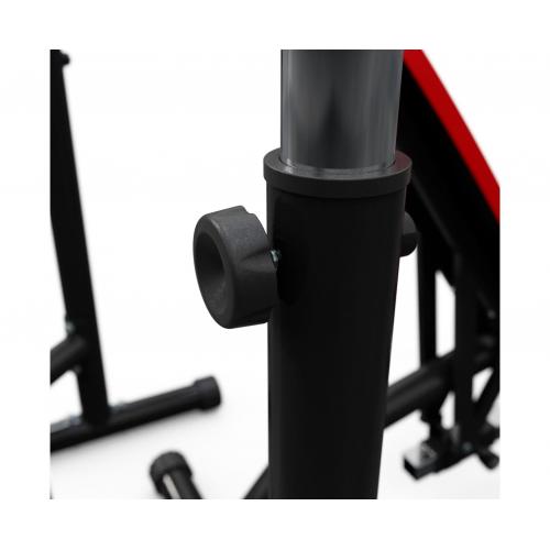 – Стойки: регулируются по высоте от 123 до 137.5 см, что позволяет выполнять упражнения с разными видами штанг и гантелей.
