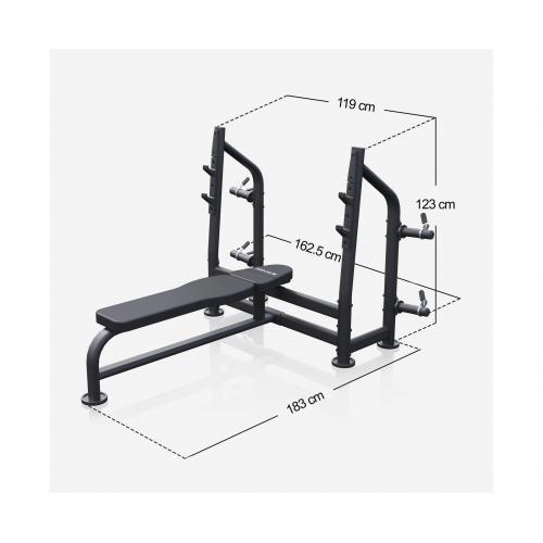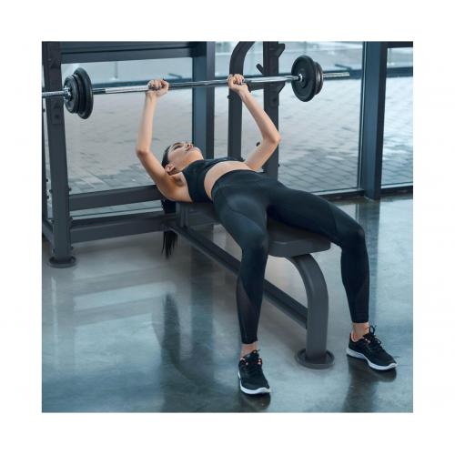 - Скамья обеспечивает оптимальные условия для выполнения жима лёжа, жима на плечи, разведений рук и многих других упражнений. Для удобства и безопасности тренировки предусмотрены страховочные крюки, обеспечивающие высокий уровень безопасности во время занятий. Четыре держателя для блинов с пружинными замками помогают поддерживать порядок в тренировочной зоне, а конструкция рассчитана на использование стандартных олимпийских блинов.