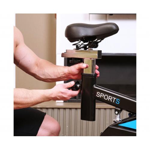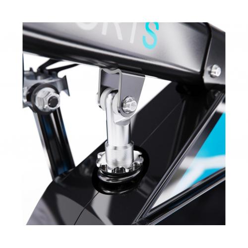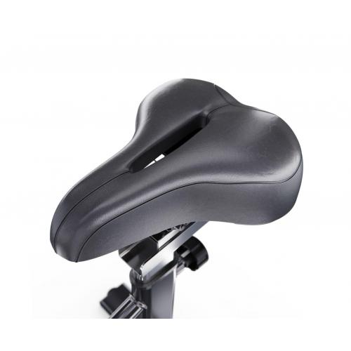 - Регулировка руля на 5 уровней по вертикали в диапазоне от 114 до 123 см позволяет настроить руль под рост каждого пользователя, обеспечивая максимальный комфорт и эффективность тренировок. Спортивное сиденье также регулируется по горизонтали и на 5 уровней по вертикали от 85 до 95 см, что помогает настроить велотренажер под свой рост.