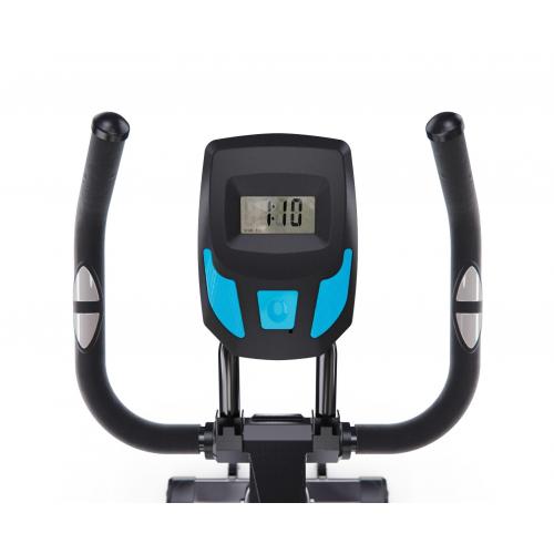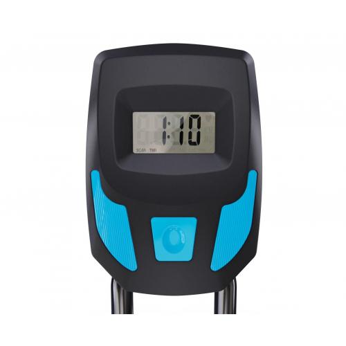 - Монохромный LCD дисплей отображает такие параметры как время, скорость, дистанция, калории, пульс. Для работы консоли используются батарейки типа “ААА”, батарейки не входят в комплект поставки.