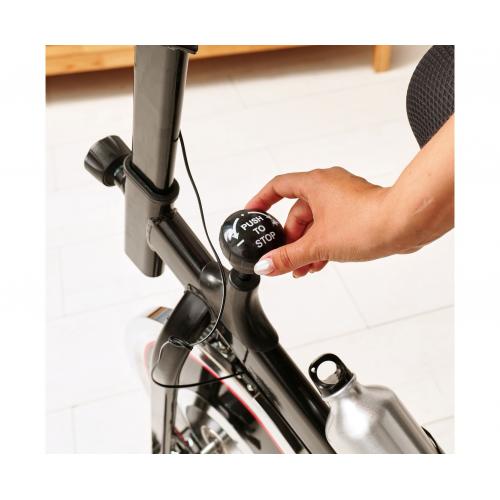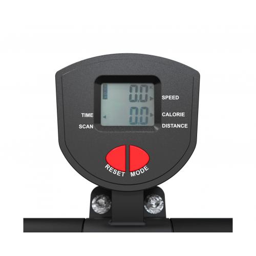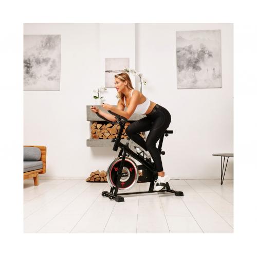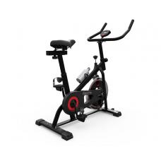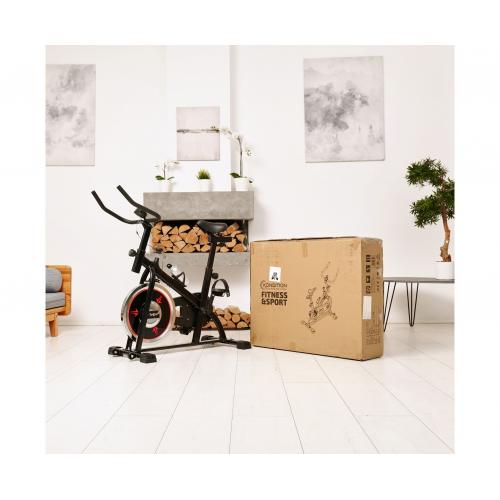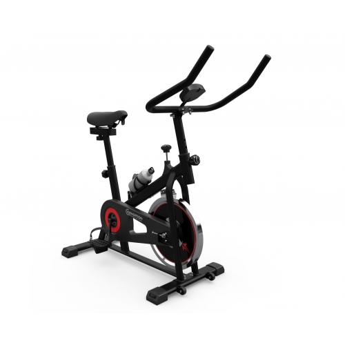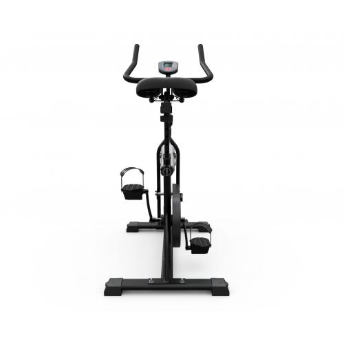 В комплекте со спин-байком идет бутылка для воды, держатель для нее, компенсаторы неровностей пола и транспортировочные ролики для удобства перемещения. Дисплей отображает время, скорость, расстояние и количество калорий, что помогает следить за прогрессом и эффективностью тренировок. Для работы дисплея требуется одна батарейка типа ААА, которая не входит в комплект.